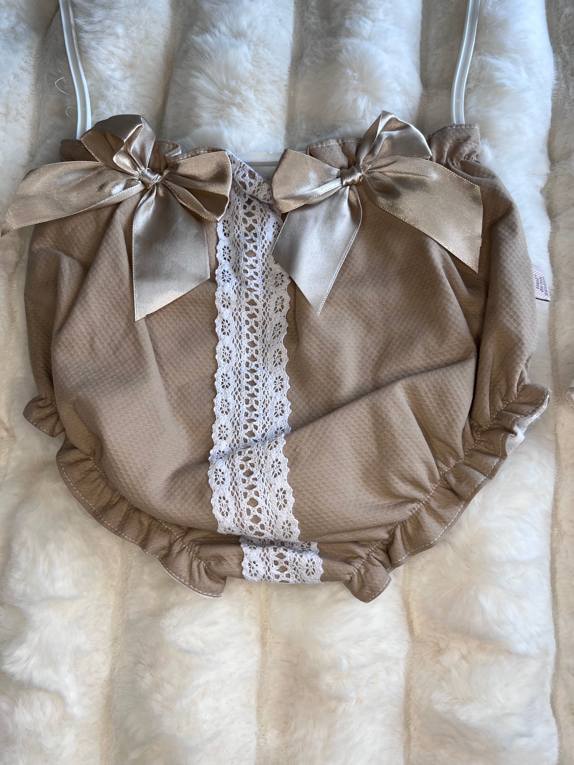 Girls Beige Double Bow 2 Piece Set